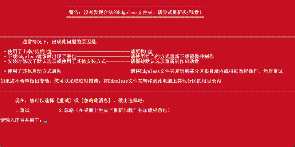 警告:没有发现合法的Edgeless文件夹!请尝试重新拔插U盘!